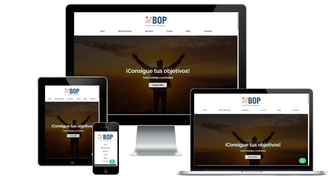 Web institucional y funcional para BOP Coaching, con blog integrado y pasarelas de pago para la venta de cursos online.