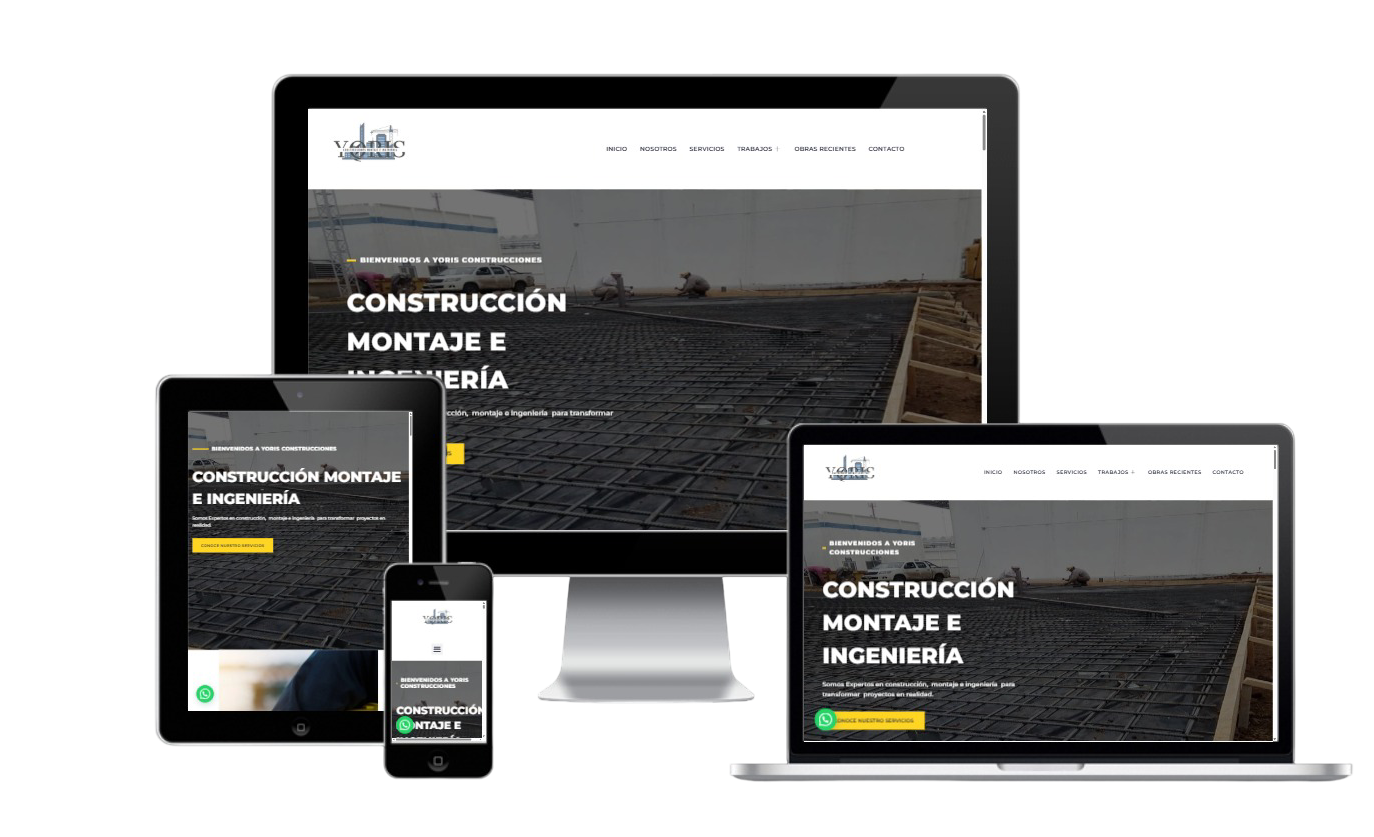 Web para Yoris Construcciones, con un diseño que refleja profesionalismo, mostrando sus trabajos y servicios en áreas eléctricas, civiles y de montaje.